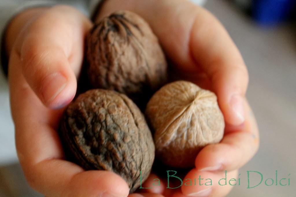 una nuova scoperta: le noci. Perciò ho pensato di fargliele assaggiare modificando lievemente la ricetta originale.