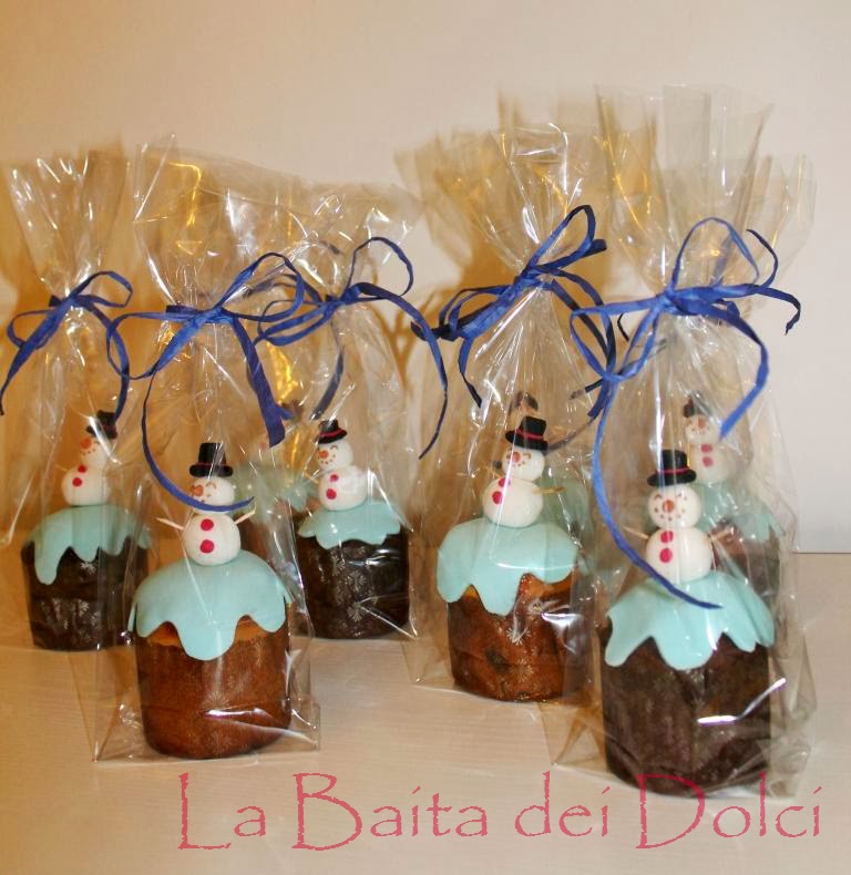 Iniziamo con i panettoncini decorati con la pasta di zucchero. Li trovo semplici, ma di sicuro