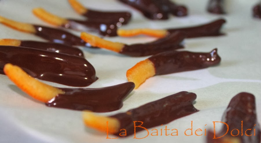 scorzetta alla volta nel cioccolato. Appoggiate le scorzette coperte di